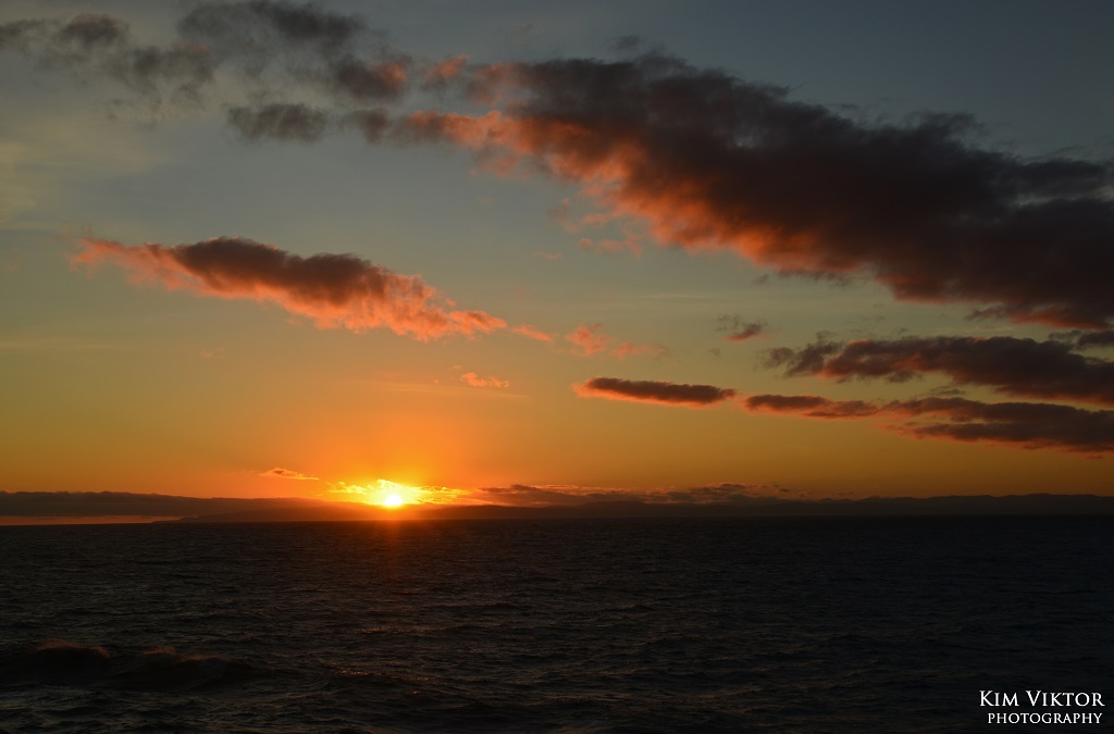 Vacker solnedgång med vi gick runt spetsen av Sydön för att komma till den västra delen av ön.