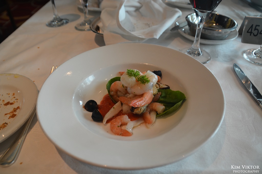 Denna kväll var det italiensk meny i restaurangen. Jag passade på att äta en seafood antipasto och kalvscaloppine, mycket gott.