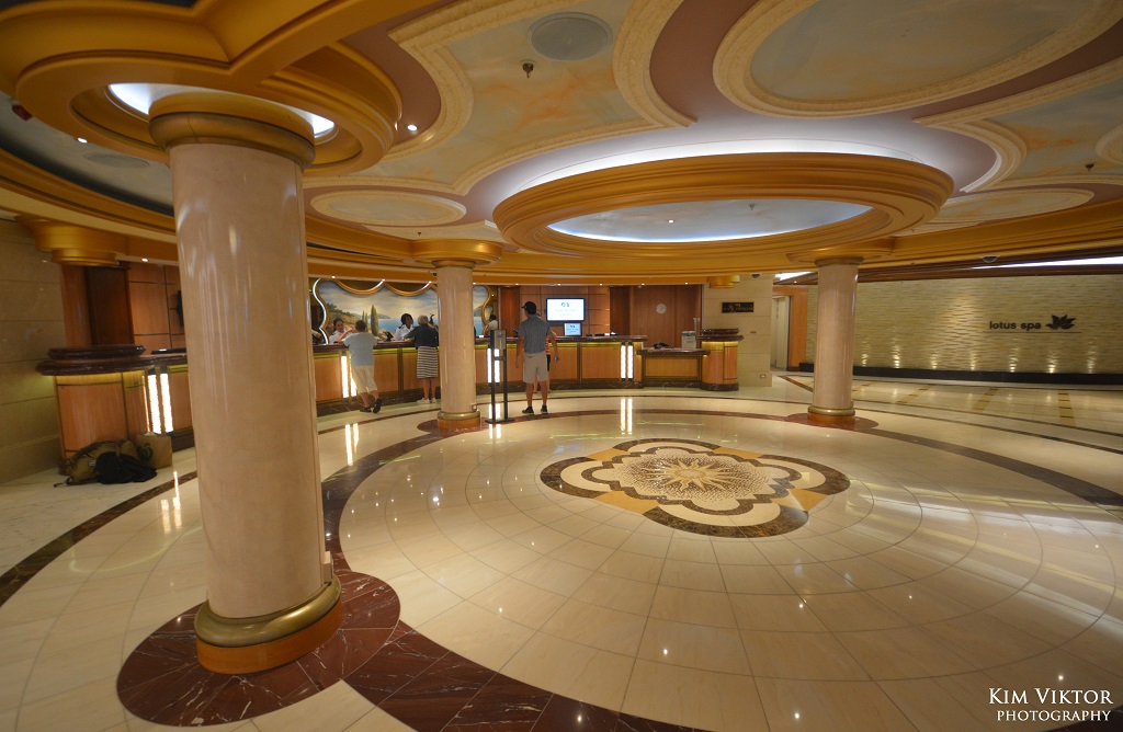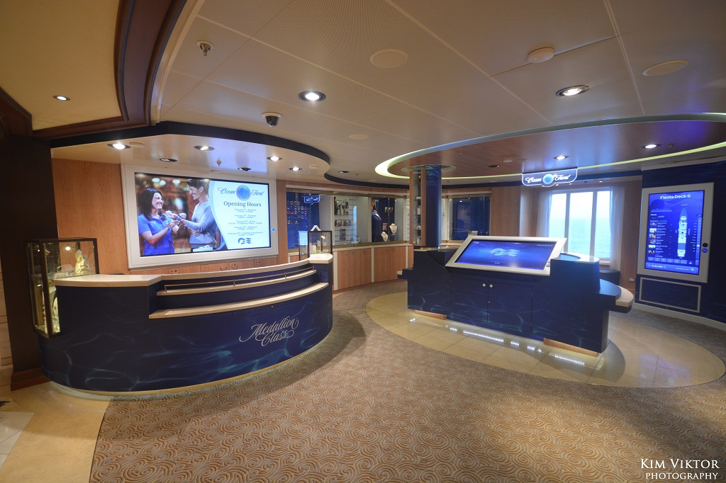 Receptionen och utflyktsdisken. Jag behövde aldrig gå hit under resan. Det som är bra med Princess app är att man kan chatta direkt med receptionen, så när vi hade problem med toaletten så skrev vi bara till dem och de skickade dit en reparatör på en gång.