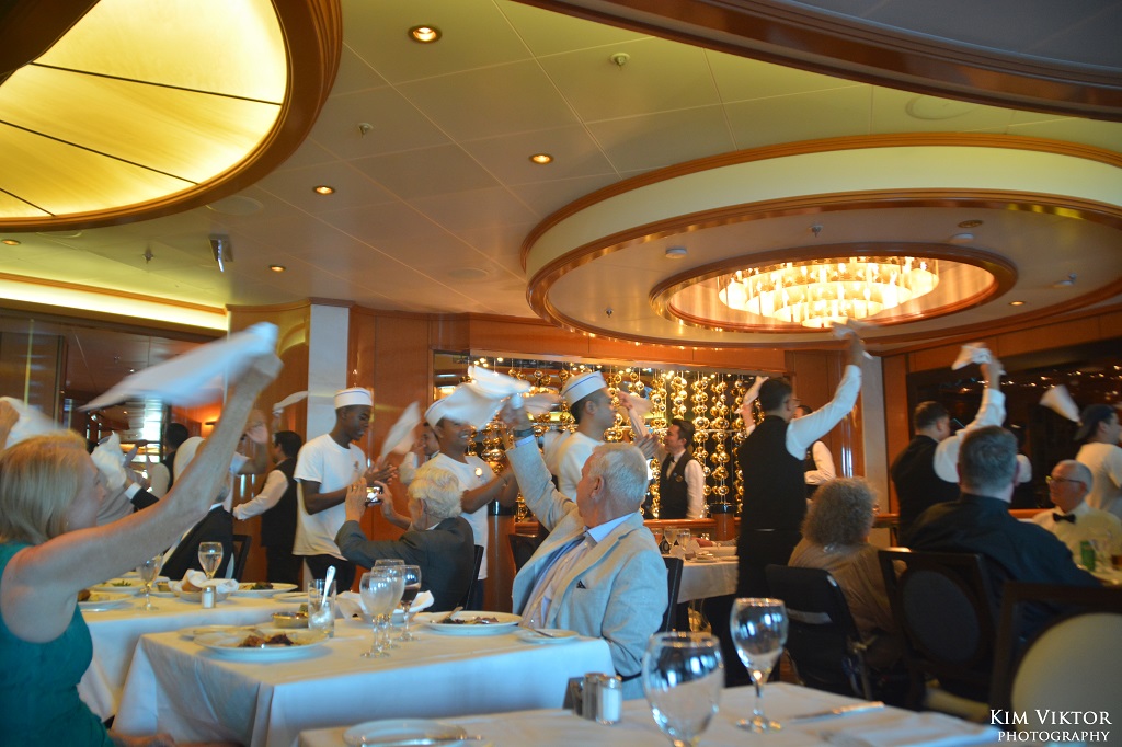 Symphony dining room, erbjuder traditionella sittningar, en tidig klockan 17 och en senare klockan 19.15. Vi åt på den sena sittningen ett par gånger och jag upplevde servicen som bättre här och det gick även snabbare att få maten.