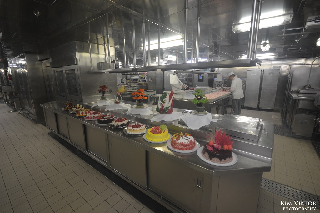 Efter matlagningen fick vi gå in i det mindre köket på däck 6 (det stora köket ligger längre ner i fartyget). Visste ni i att i genomsnitt så används 680 kg mjöl dagligen i bageriet, det tillagas 635 kg kyckling och 770 kg nötkött varje dag ombord?
