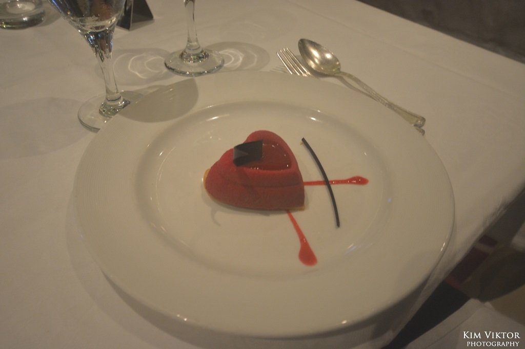 Nästsista middagen ombord var en galamiddag som bjöd på bland annat ”Beef and reef”, oxfilé med räkdumplings.