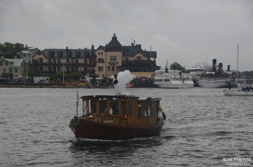 S/S Ejdern med hemmahamn i Södertälje var som vanligt följebåt och äldsta fartyg i Vaxholm denna kväll, byggd 1880.