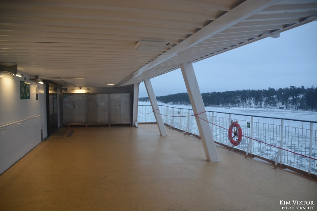 Som synes kunde man inte ens gå fram till relingen. Jag förstår att det kan bli halt på däcket, men detta är lite överdrivet.
