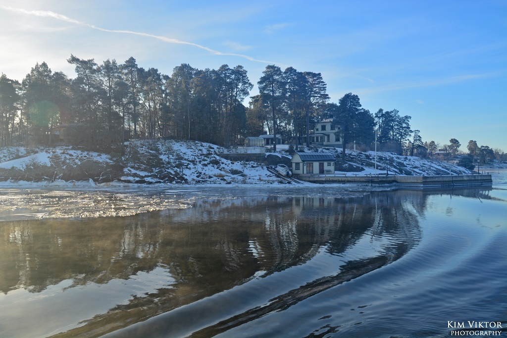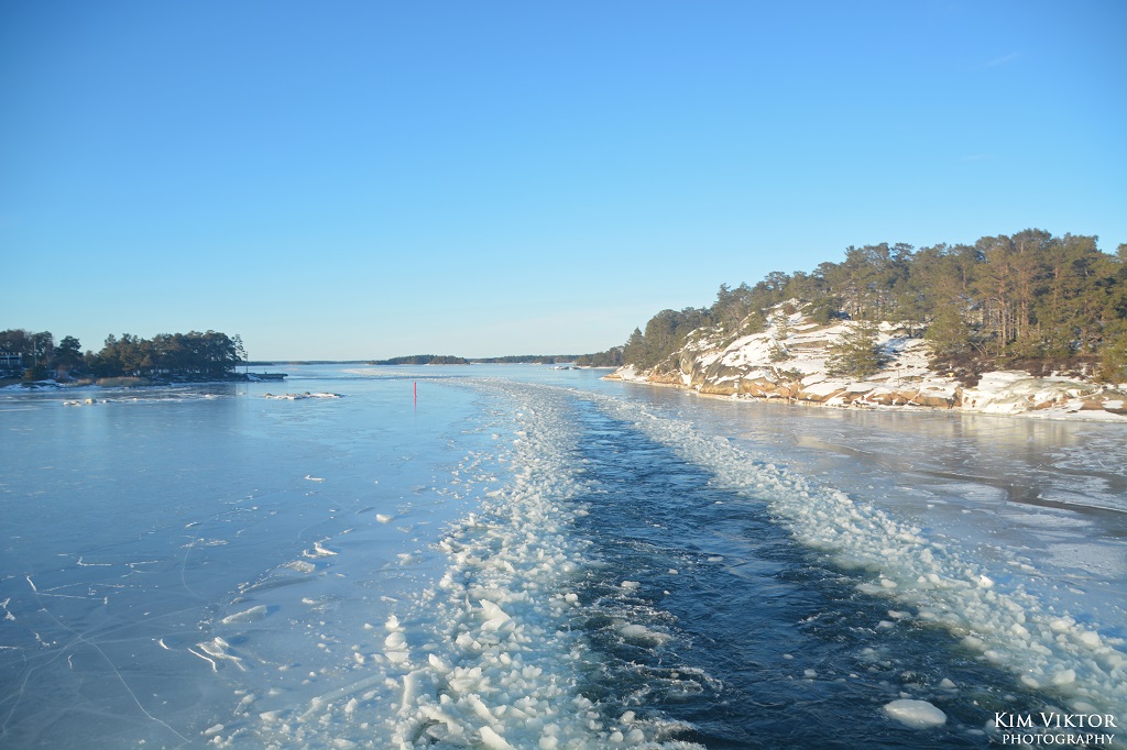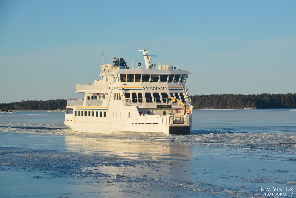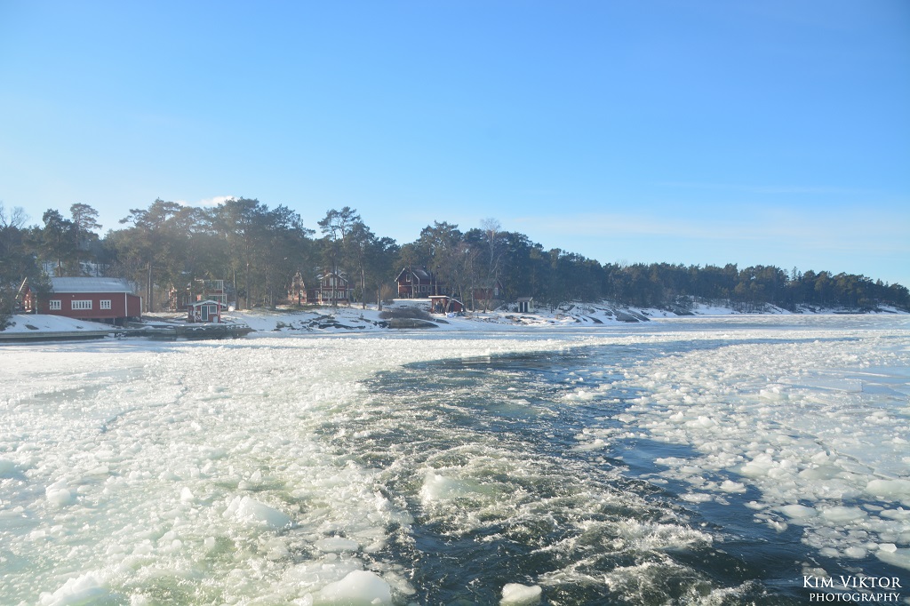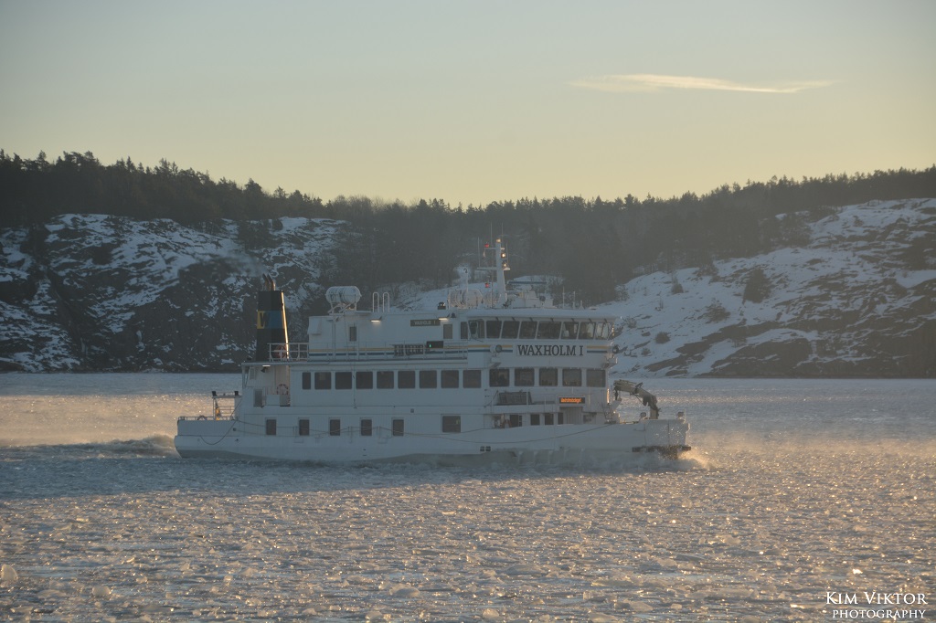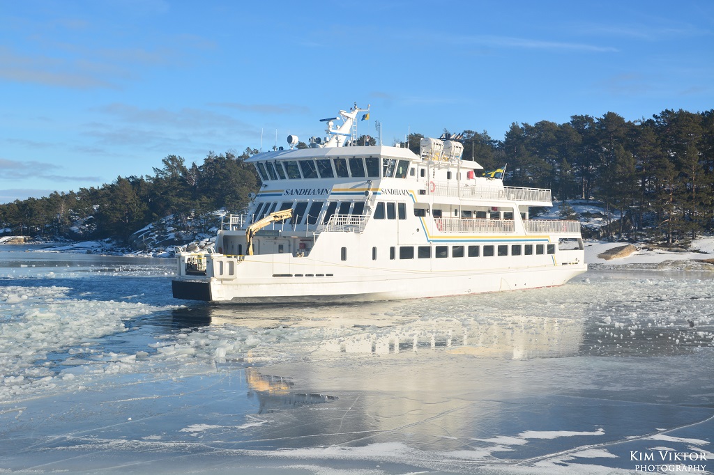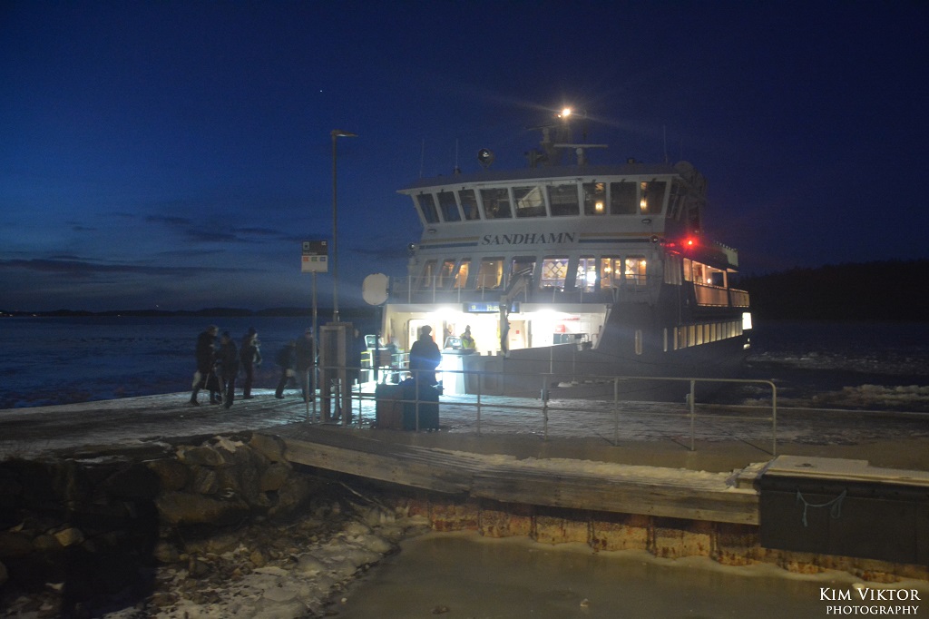 I mitten av februari var det pangväder en dag när jag var ledig. Jag passade därför på att ta en tur ut i skärgården som är minst lika vacker vintertid. Eftersom det var en måndag, så lämnade jag Strömkajen redan vid 07.30. Jag åkte hela vägen ut till Finnhamn där stannande jag i två timmar. Så skönt att vara helt ensam ute på ön (förutom tillsynsmannen). Det var många år sedan jag såg så här mycket is i skärgården. Resan gick tillbaka med samma fartyg m/s Sandhamn. Denna gång kom jag dock bara till Boda där jag fick byta till bussen mot Slussen.