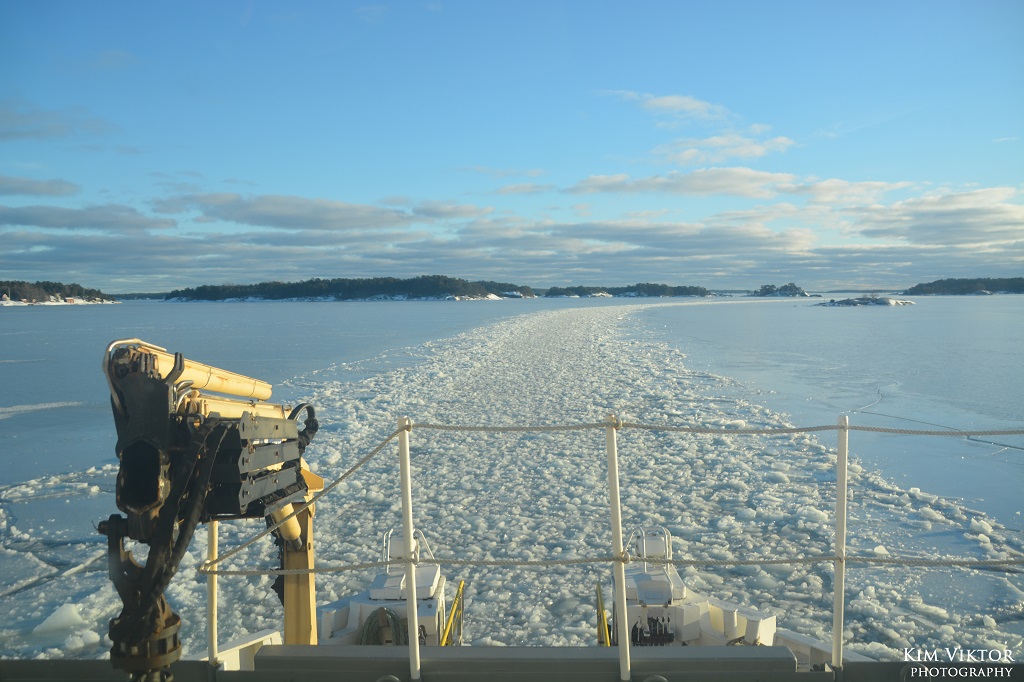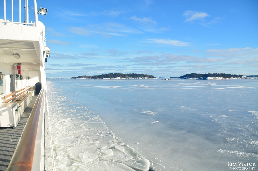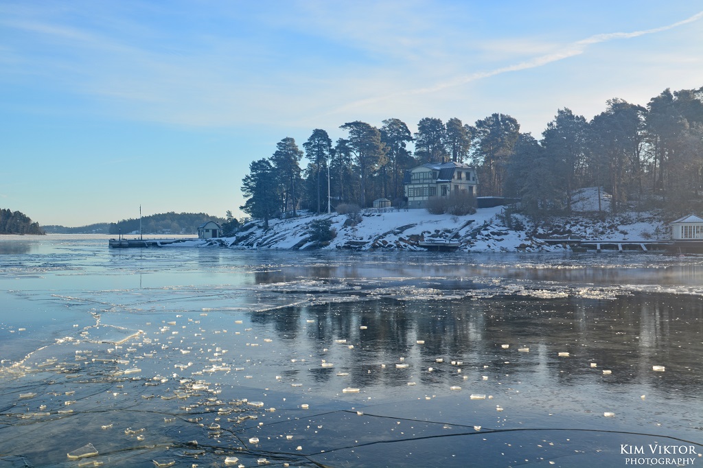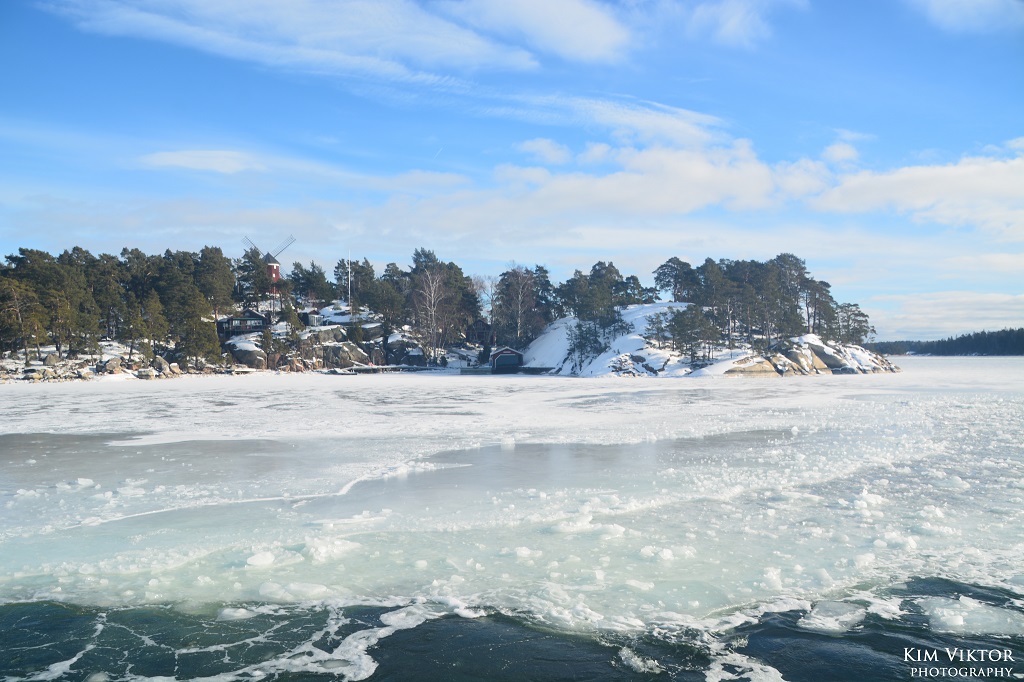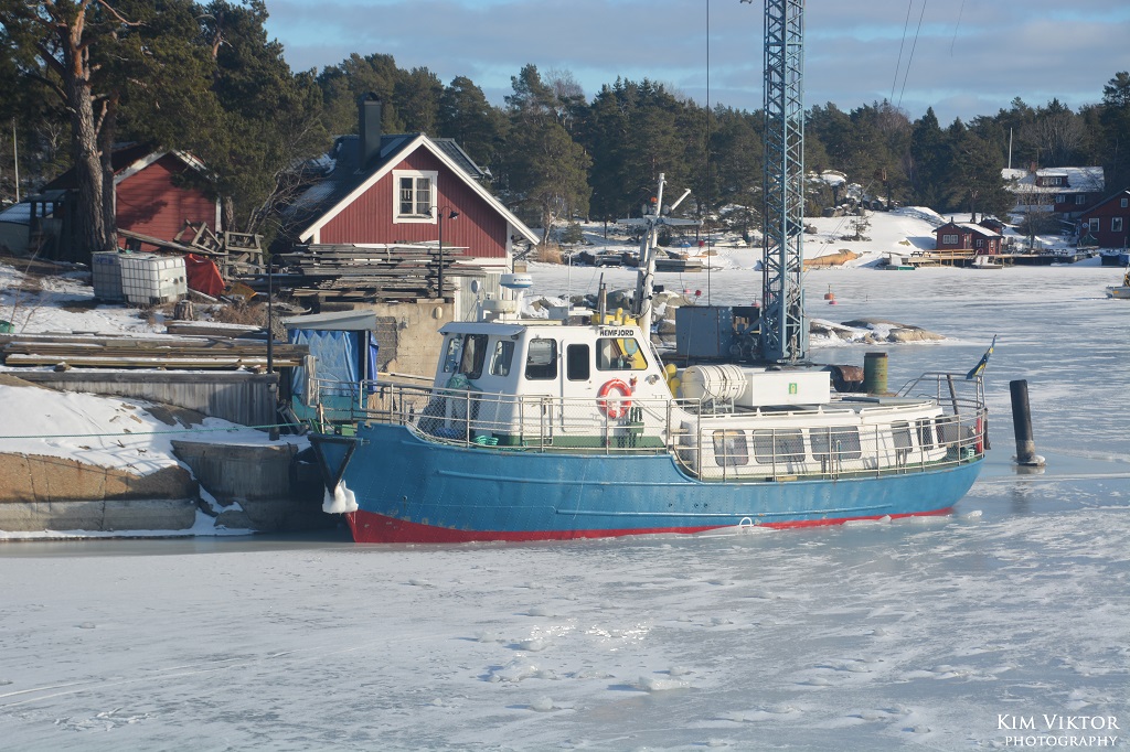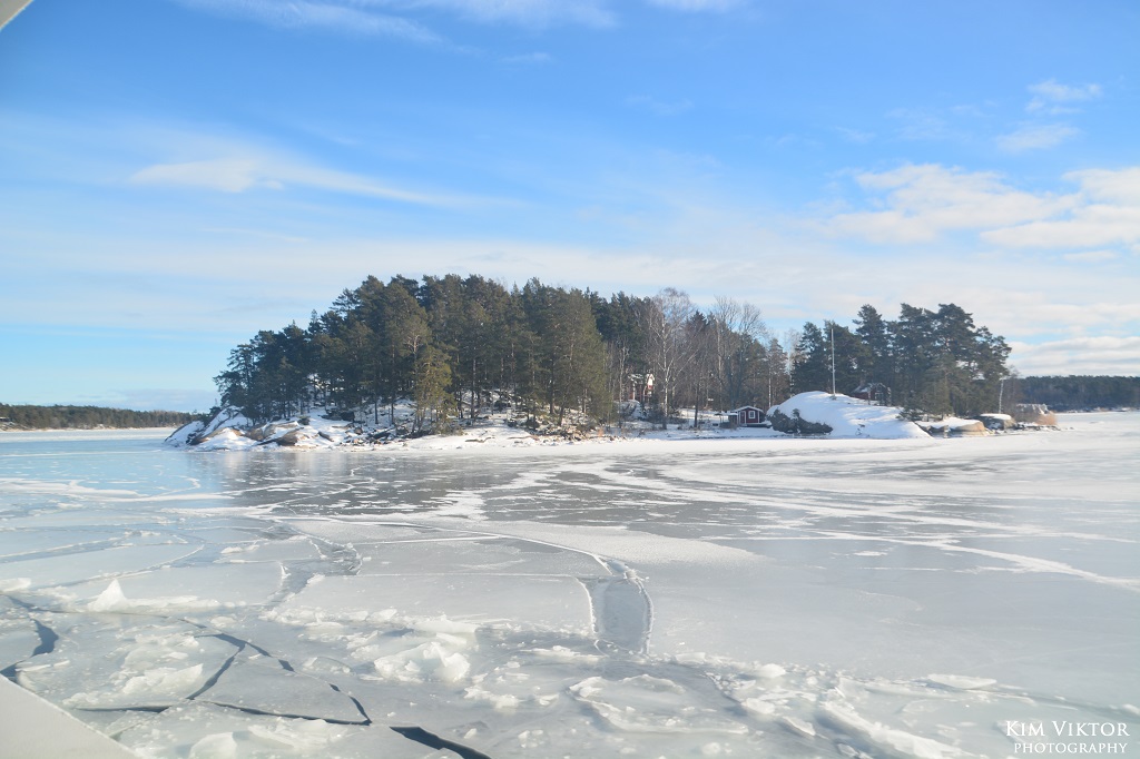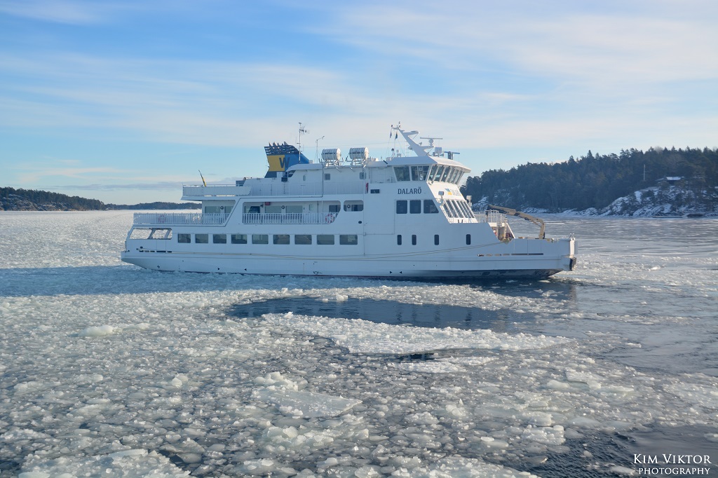 I mitten av februari var det pangväder en dag när jag var ledig. Jag passade därför på att ta en tur ut i skärgården som är minst lika vacker vintertid. Eftersom det var en måndag, så lämnade jag Strömkajen redan vid 07.30. Jag åkte hela vägen ut till Finnhamn där stannande jag i två timmar. Så skönt att vara helt ensam ute på ön (förutom tillsynsmannen). Det var många år sedan jag såg så här mycket is i skärgården. Resan gick tillbaka med samma fartyg m/s Sandhamn. Denna gång kom jag dock bara till Boda där jag fick byta till bussen mot Slussen.