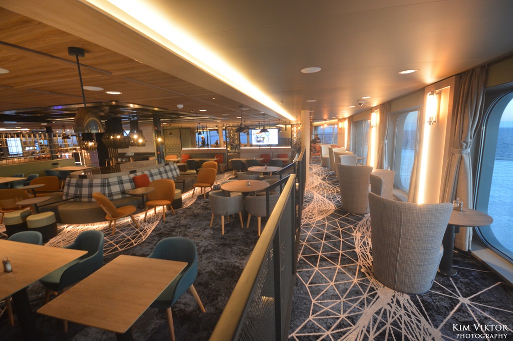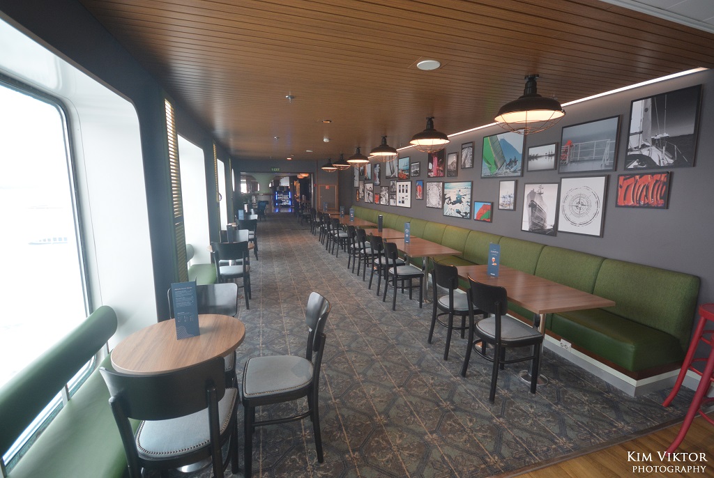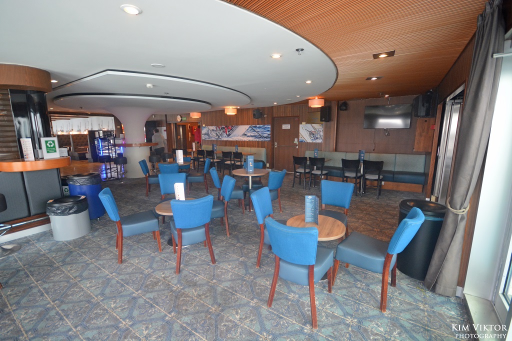Jag har tidigare åkt med systerfartyget till Finnswan, Europalink nere i Medelhavet, så jag kände igen mig ombord. På bilden syns Bar Navigare.