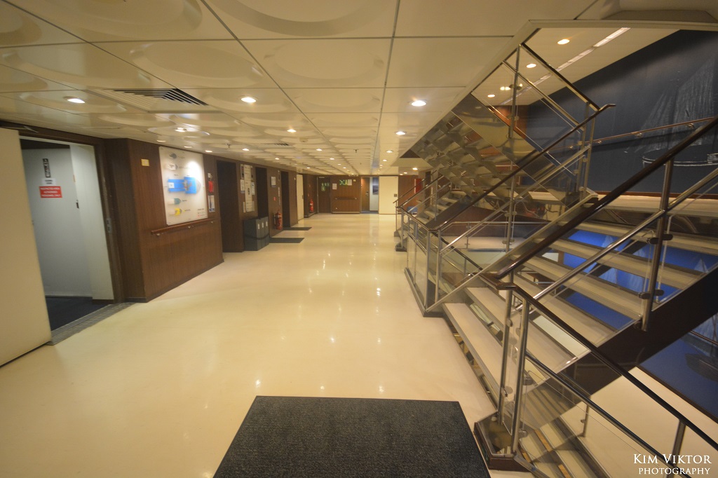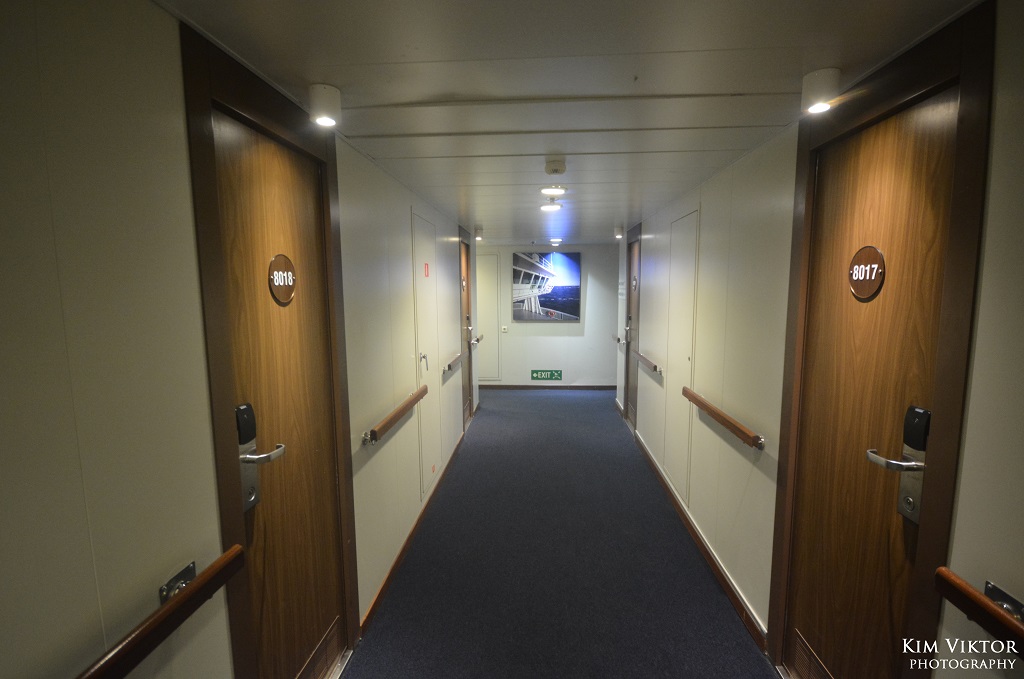 Hyttkorridorerna är väldigt breda och rätt så läckert inredda för att vara en lastfärja.