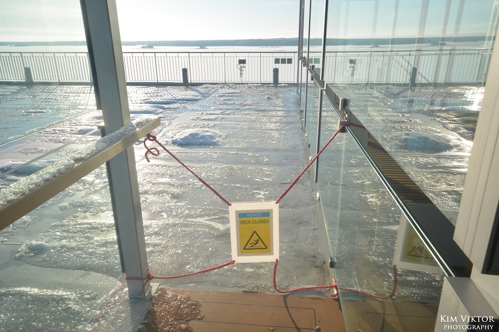 Jag fick lite panik när jag skulle ut och fota avgången för i princip alla utedäck var stängda.