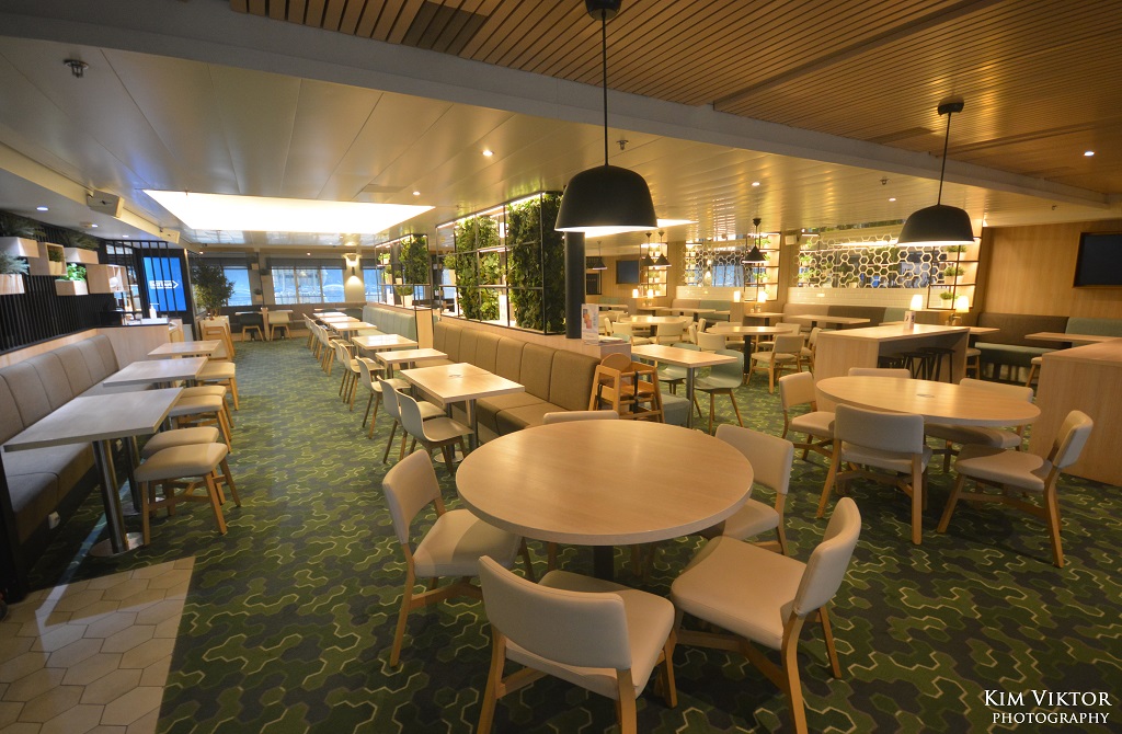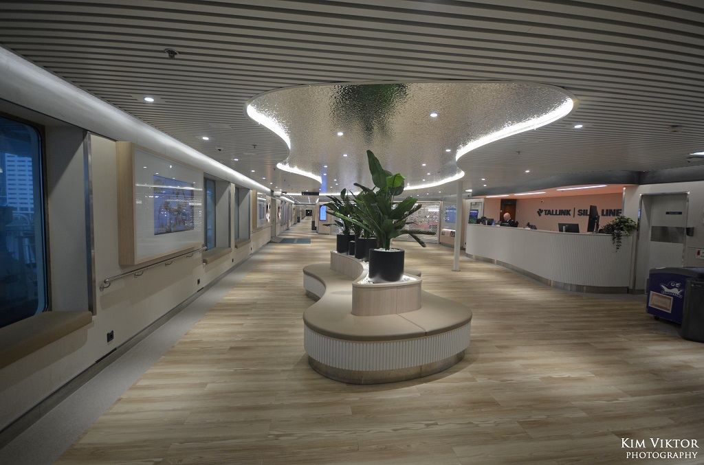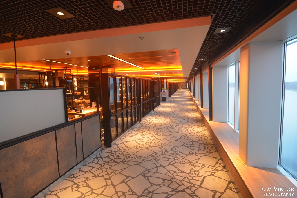 Fartyget genomgick en större renovering förra året. Bland annat fräschade de upp lobbyn, som nu har fått ljusare färger.
