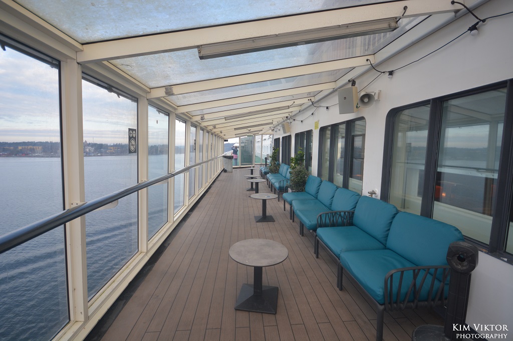 När man ska gå ut till soldäcket måste man passera ”växthuset”, nu har de som tur är infört rökfördbjud på ena sidan, även