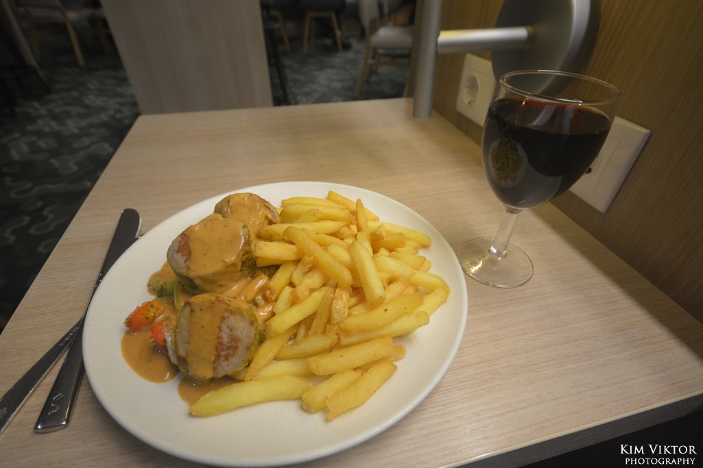 Till middag blev det fläskfilé i Fast lane. Jag var lite förvånande att ingen i besättningen som jag hade kontakt med pratade svenska utan alla gick över till engelska. Det spelar ingen större roll för mig, men jag är van att de flesta på finlandsfärjorna pratar åtminstone lite svenska.