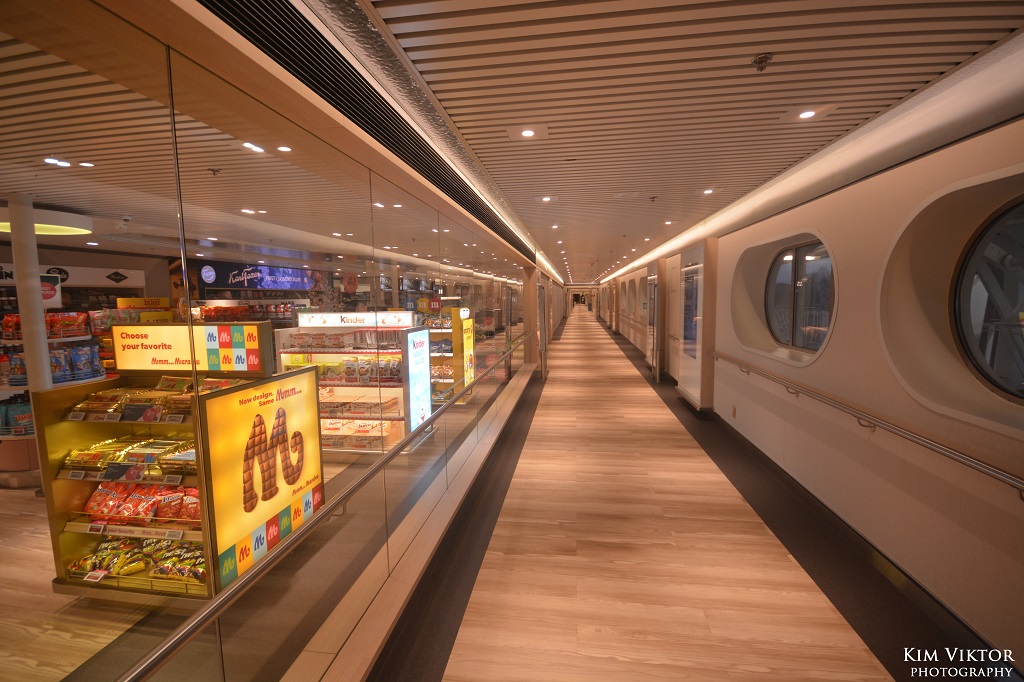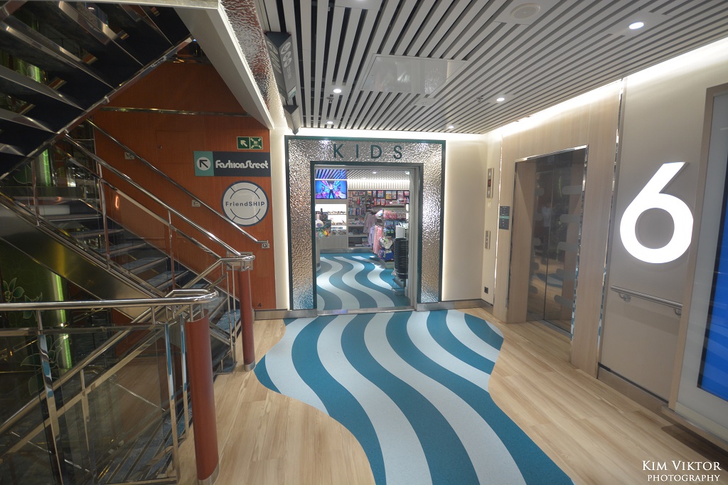 På däck 6 finns 3 olika butiker och en klädaffär på däck 7.